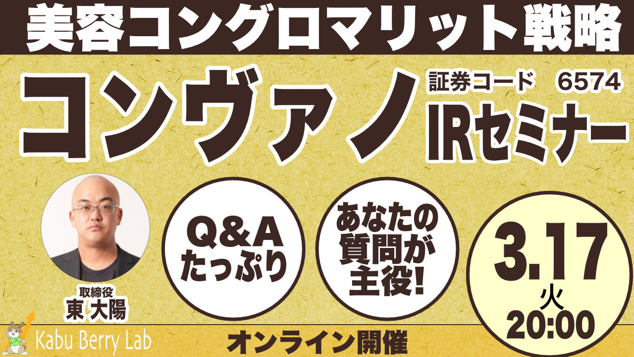 Kabu Berry Lab コンヴァノ(6574)IRセミナー 2026.3.17オンライン開催