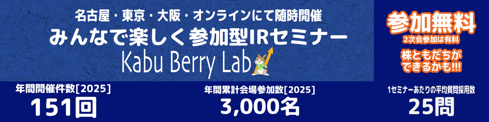 🟡キャンセル分受付中シンカ(149A)・アイキューブドシステムズ(4495)・アップガレージグループ(7134)名古屋開催 2026.2.21【Kabu Berry Lab】