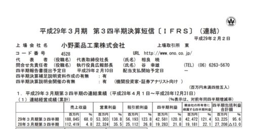 2017/02/05 小野薬品工業(4528) 3Q