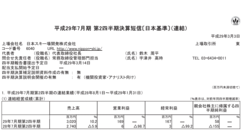 ■決算短信分析の株ブログ■ 日本スキー場開発(6040)