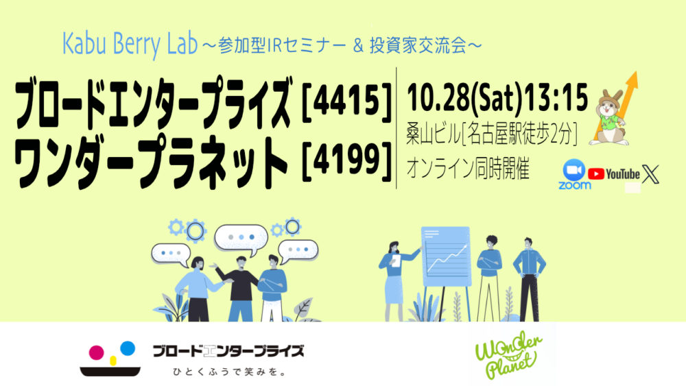 Kabu Berry Lab [ブロードエンタープライズ(4415),ワンダープラネット(4199)IRセミナー+投資家交流会] 2023.10.28