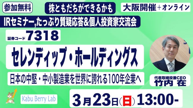 Kabu Berry Lab [セレンディップ・ホールディングス(7318)IRセミナー+投資家交流会] 2025.3.23 大阪開催