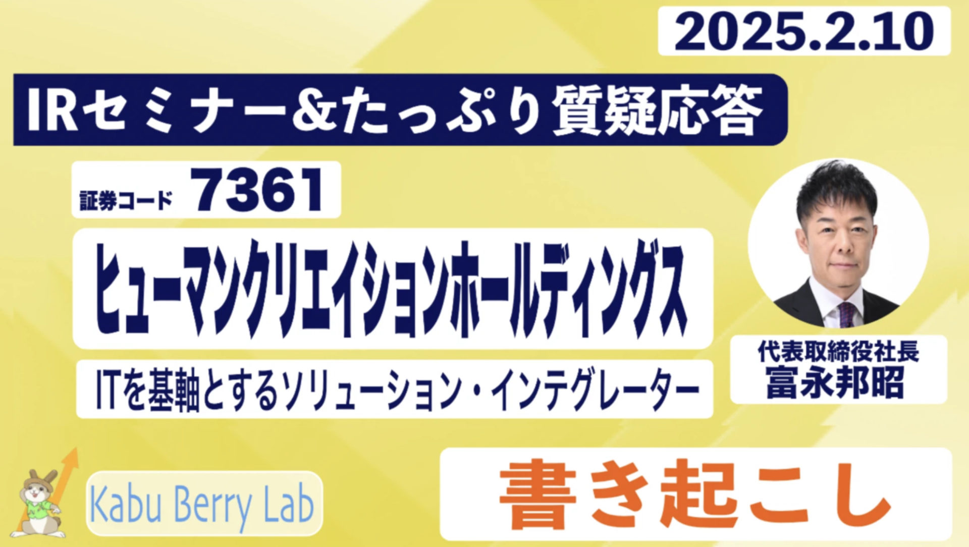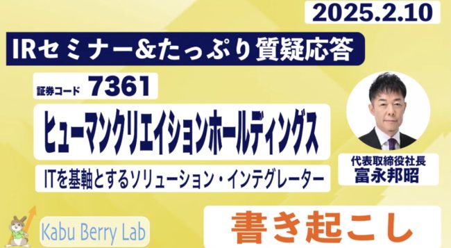 [書き起こし・アーカイブ動画]ヒューマンクリエイションホールディングス(7361)IRセミナー&質疑応答 2025.2.10