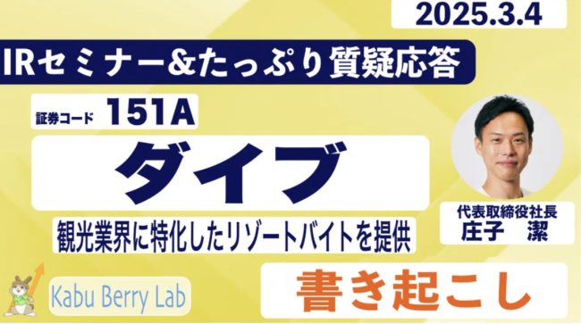 [書き起こし・アーカイブ動画]ダイブ(151A)IRセミナー&質疑応答 2025.3.4