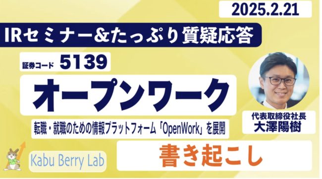 [書き起こし・アーカイブ動画]オープンワーク(5139) IRセミナー&質疑応答 2025.2.21