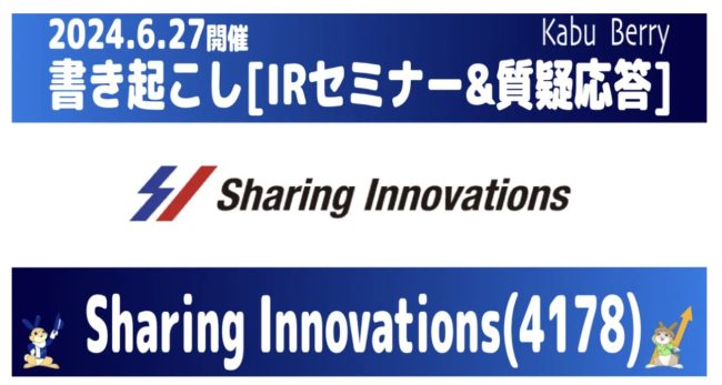 [書き起こし]Sharing Innovations(4178)IRセミナー・質疑応答 2024.6.24開催