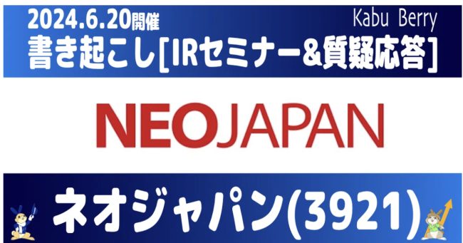 [書き起こし]ネオジャパン(3921) IRセミナー・質疑応答 2024.6.20開催