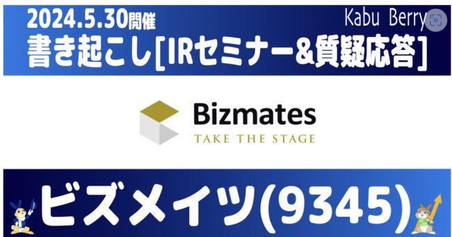 [書き起こし]ビズメイツ(9345)IRセミナーIRセミナー・質疑応答 2024.5.30開催