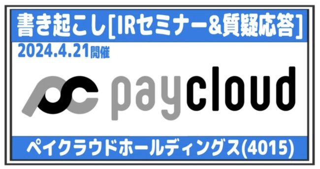 [書き起こし]ペイクラウドホールディングス(4015) IRセミナー・質疑応答 2024.4.21開催