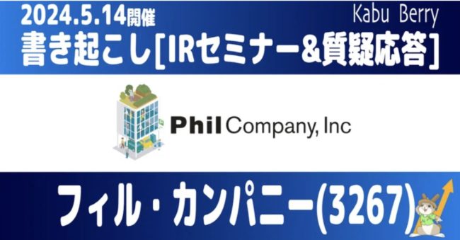 [書き起こし] フィル・カンパニー(3267)IRセミナー・質疑応答 2024.5.14開催