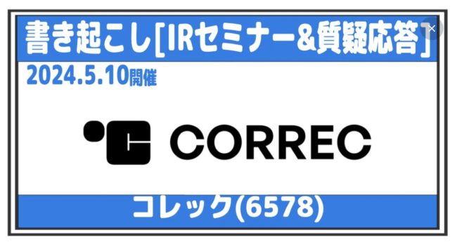 [書き起こし] コレック(6578) IRセミナー・質疑応答 2024.5.10開催