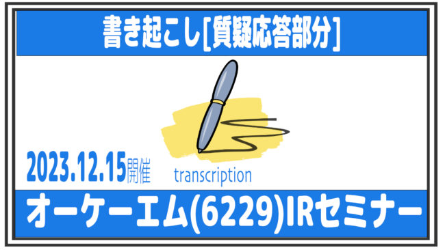 [質疑応答パートの文字起こし]オーケーエム(6229)IRセミナー 2023.12.15開催