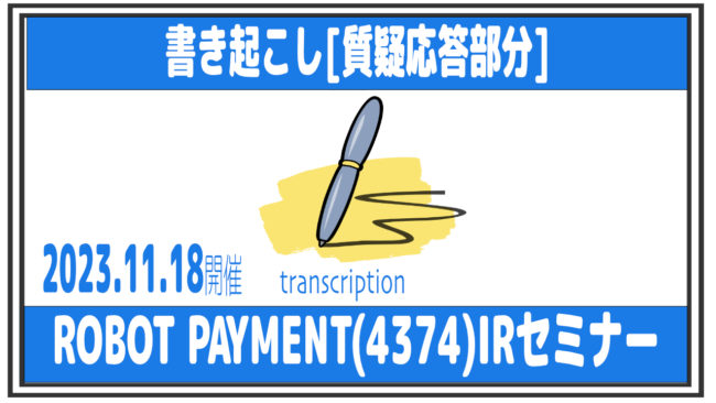 [質疑応答パートの文字起こし]ROBOT PAYMENT(4374)IRセミナー 2023.11.18