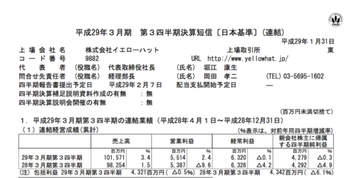 イエローハット(9982) の決算の感想とタイヤ・車の好調要因を短信から分析してみました