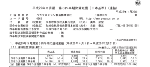2017/01/30 ペガサスミシン製造(6262) の決算の感想と工業用ミシンを分析してみました