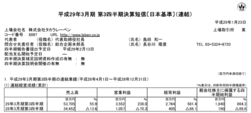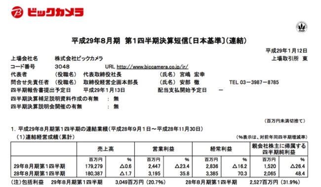 2017/01/15 ビックカメラ(3048) 1Q
