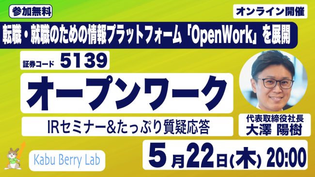 Kabu Berry Lab オープンワーク(5139) IRセミナー 2025.5.22 オンライン開催