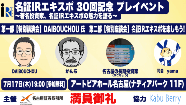 名証IRエキスポ 30回記念 プレイベント ~著名投資家、名証IRエキスポの魅力を語る~