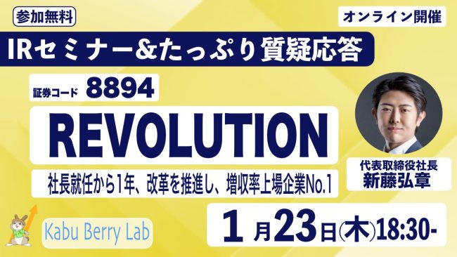 Kabu Berry Lab REVOLUTION(8894)IRセミナー 2025.1.23 オンライン開催