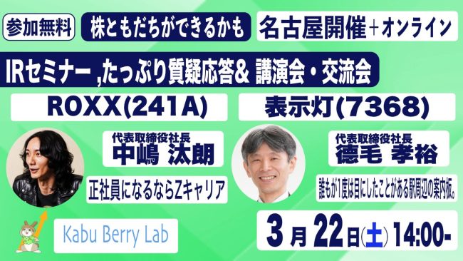 Kabu Berry Lab [ROXX(241A)・表示灯(7368) IRセミナー&投資家交流会] 2025.3.22 名古屋開催