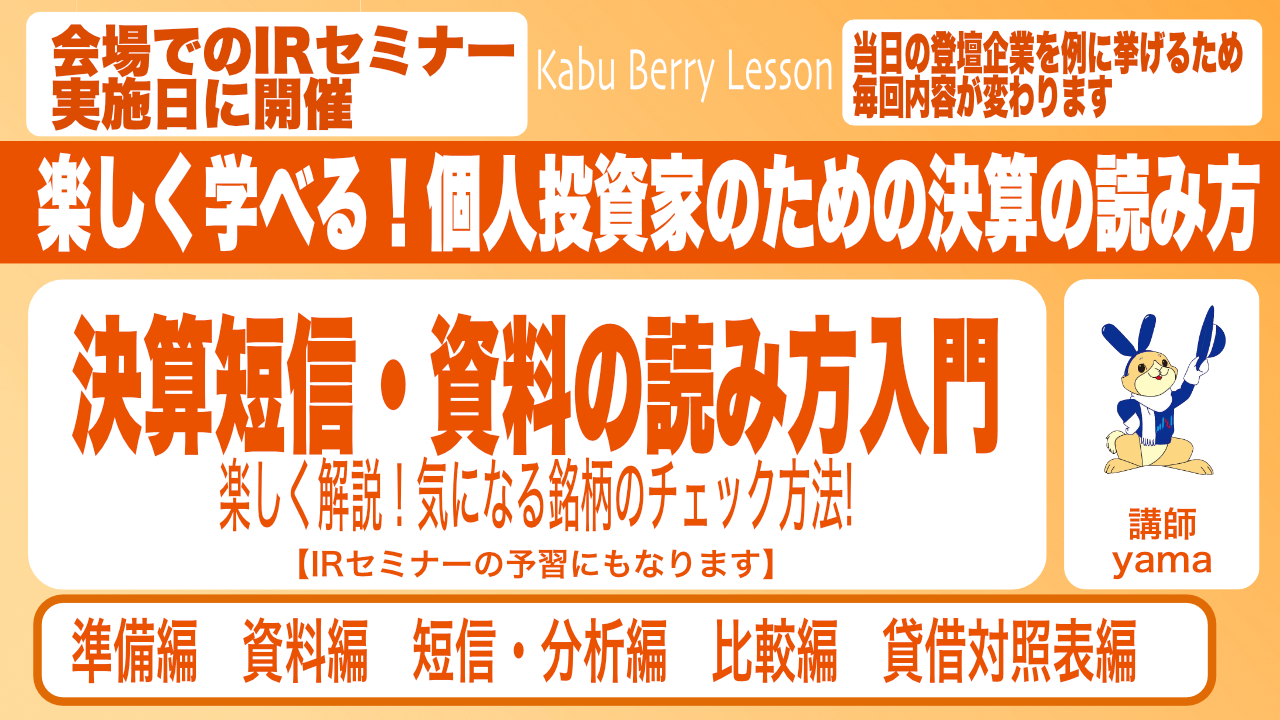 Kabu Berry Lesson 投資初心者のための決算短信・資料の読み方入門講座 [準備編]〜楽しく解説!気になる企業のチェック方法!〜 2025.3.22名古屋開催