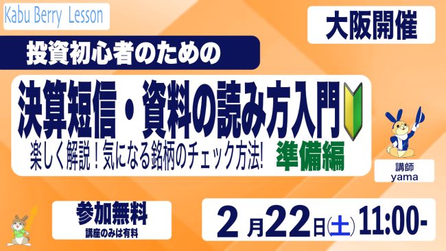 Kabu Berry Lesson 投資初心者のための決算短信・資料の読み方入門講座 [準備編]〜楽しく解説!気になる企業のチェック方法!〜 2025.2.22 大阪開催