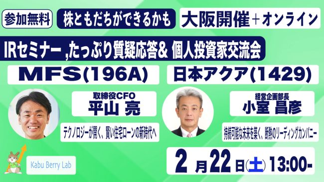 Kabu Berry Lab [MFS(196A)日本アクア(1429) IRセミナー+投資家交流会] 2025.2.22 大阪開催