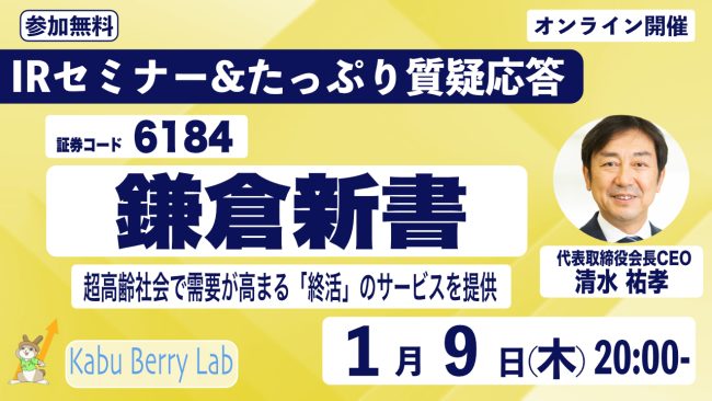 Kabu Berry Lab 鎌倉新書(6184)IRセミナー 2025.1.9オンライン開催