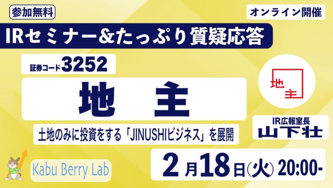 Kabu Berry Lab 地主 (3252)IRセミナー 2025.2.18オンライン開催