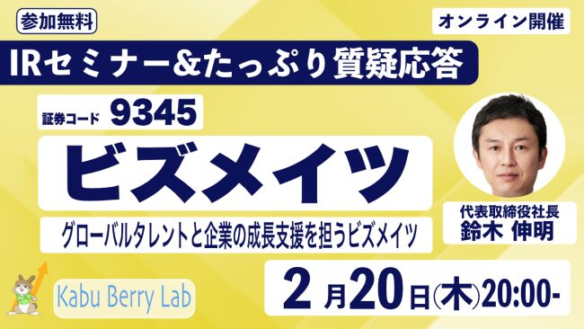 Kabu Berry Lab ビズメイツ(9345)IRセミナー 2025.2.20オンライン開催