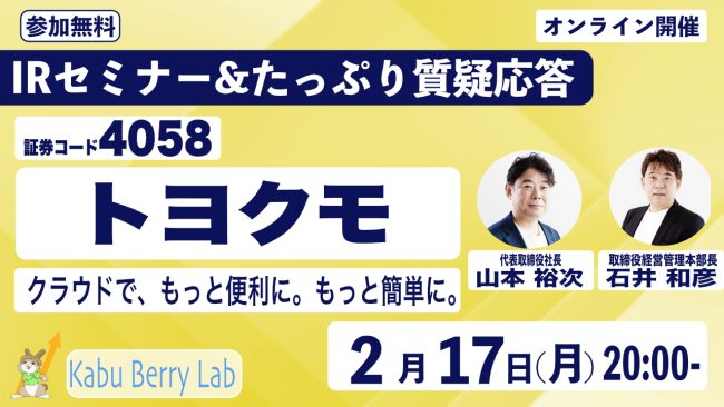 Kabu Berry Lab トヨクモ (4058)IRセミナー 2025.2.17 オンライン開催