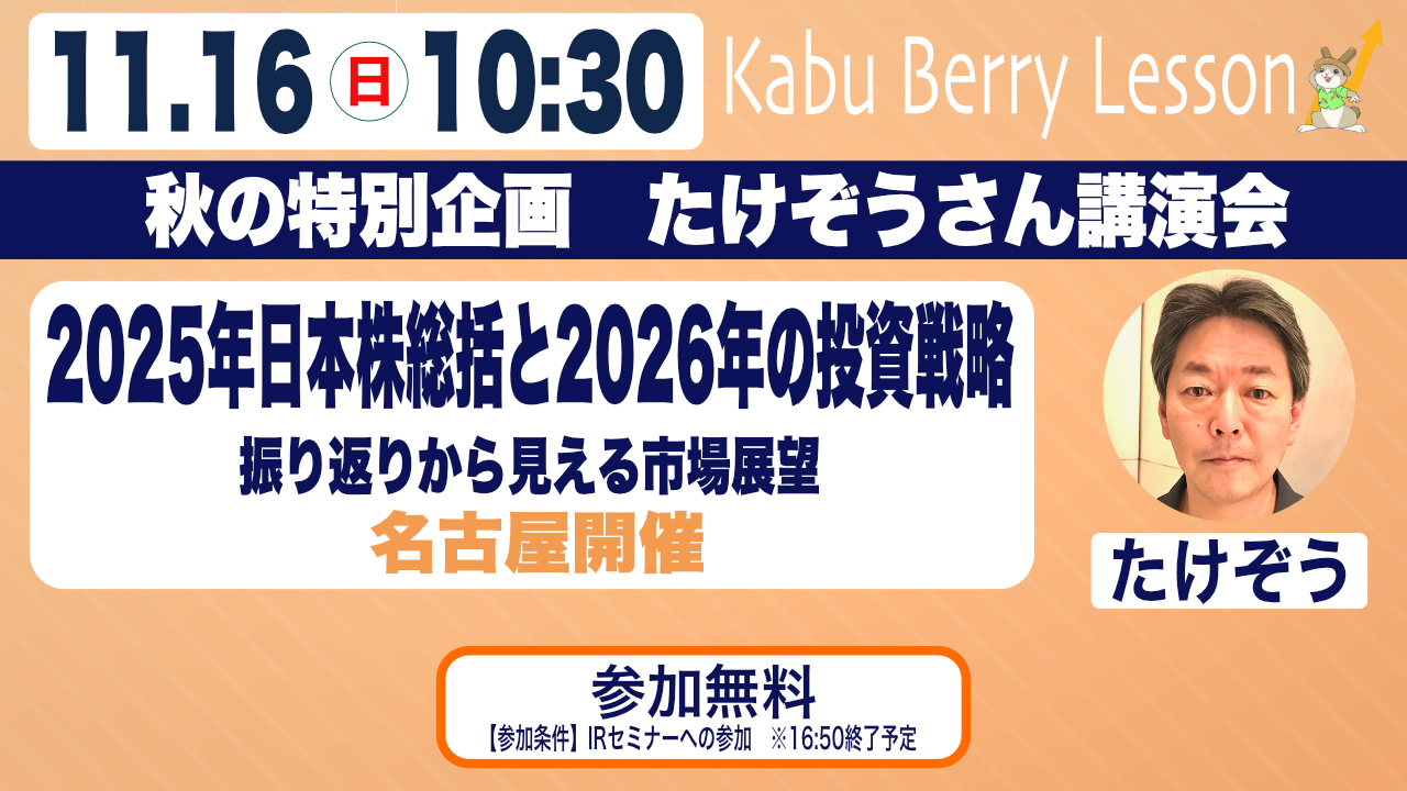 Kabu Berry Lesson 特別企画 たけぞうさん講演会 〜 2025年日本株総括と2026年の投資戦略〜 2025.11.16 名古屋開催