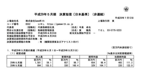 2017/07/14 サイバーステップ (3810) 4Q
