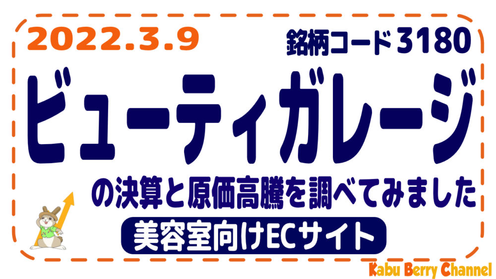 ビューティガレージ(3180)の決算と原価高騰を調べてみました