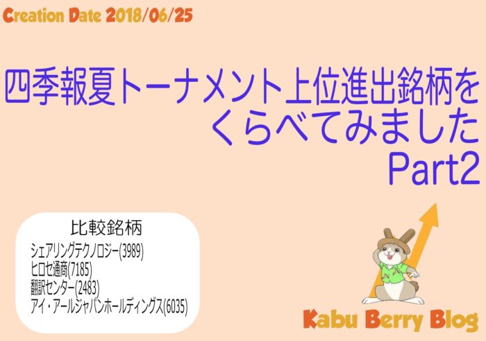 四季報夏トーナメント上位進出銘柄を比較してみました。 Part2 (上位4銘柄編)