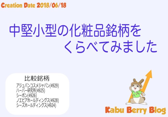 徹底比較!化粧品銘柄(中小型株編)[アジュバンコスメジャパン(4929) ハーバー研究所,シーボン,ノエビア, シーズ]