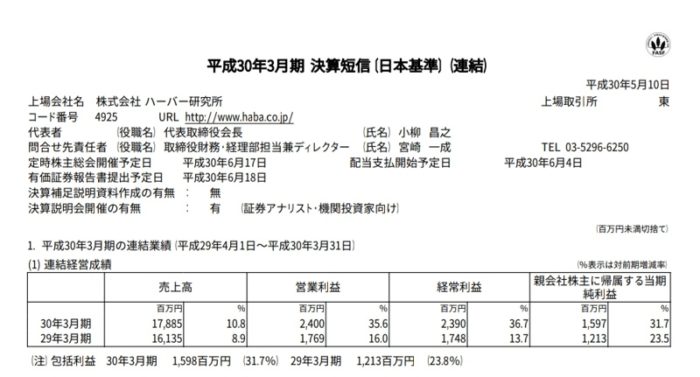 2018.05.10 ハーバー研究所(4925)の基礎化粧品の販売ルート。