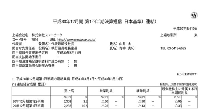 スノーピーク(7816)の決算の感想とエントリーモデルは平均184460円