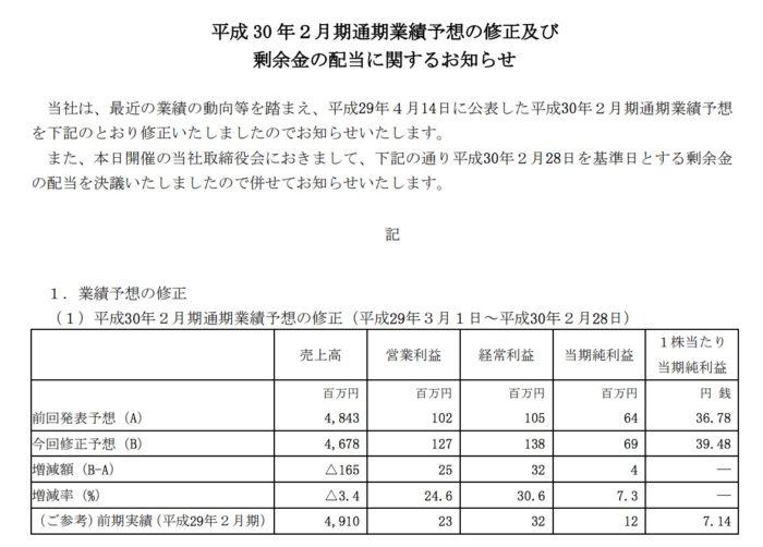 バロックジャパンリミテッド(3548)の4.3%の配当利回りについて短信・資料・有価証券報告書でしらべてみました