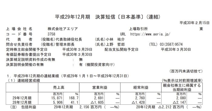 アエリア(3758)の4Q売上UPの理由と来期について思うこと。