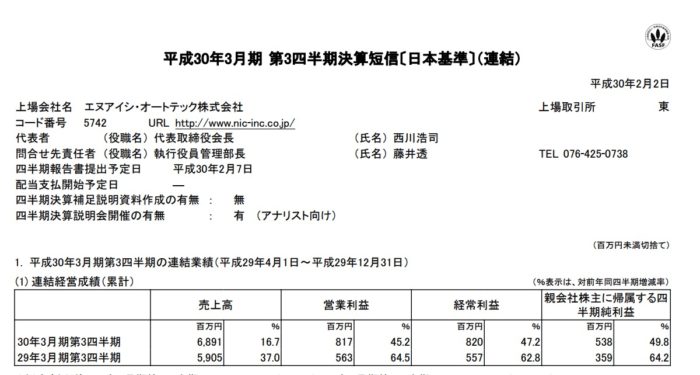 エヌアイシ・オートテック(5742)のクリーンルームの新工場効果について
