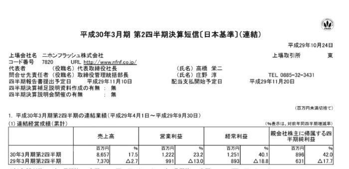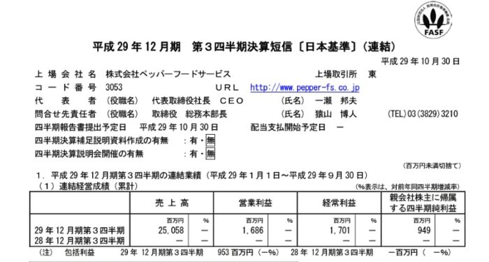 2017/10/30 ペッパーフードサービス(3053) 3Q