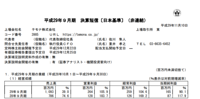 テモナ(3985)の決算の感想とたまごリピートについて調べてみました