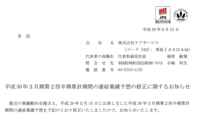 2017/10/01 アクトコール(6064)3Q