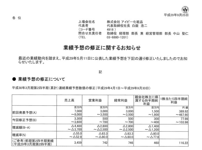 2017/09/25 アイビー化粧品 (4918)
