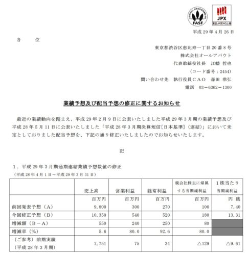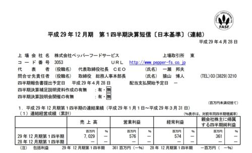 2017/05/01 ペッパーフードサービス (3053) 1Q
