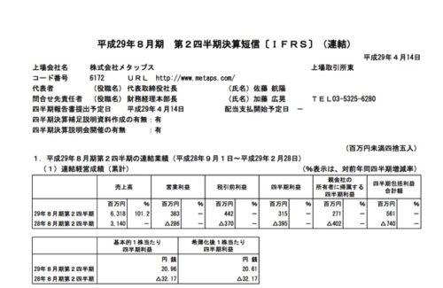 決算短信分析の株ブログ■2017/04/16 メタップス(6172) と仮想通貨