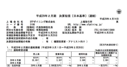 決算短信分析の株ブログ■2017/04/15 SFP(3198)の磯丸水産の成長余力