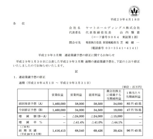 ヤマトホールディングス(9064)の決算の感想とクロネコヤマトの取扱量について調べてみました