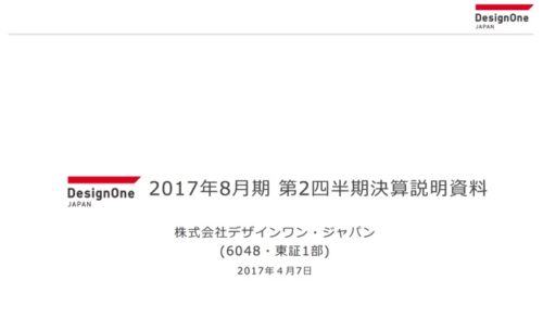 2017/04/08 デザインワン・ジャパン(6048) 2Q